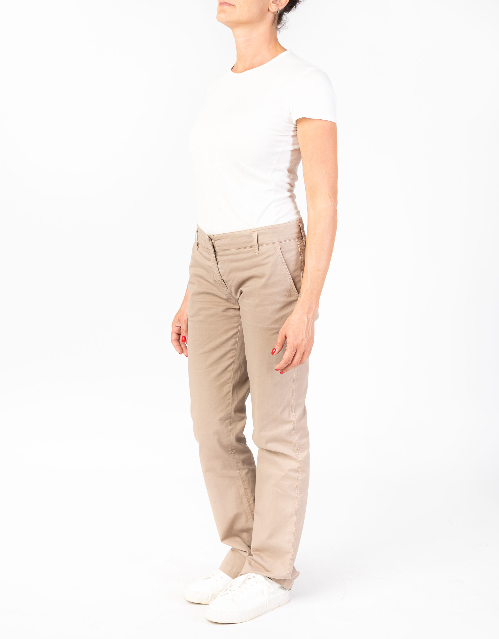 Pantalone Prada color corda con gamba leggermente a zampa, tasche anteriori e posteriori e chiusura con zip e bottone clip. Perfetto per un look elegante e contemporaneo.