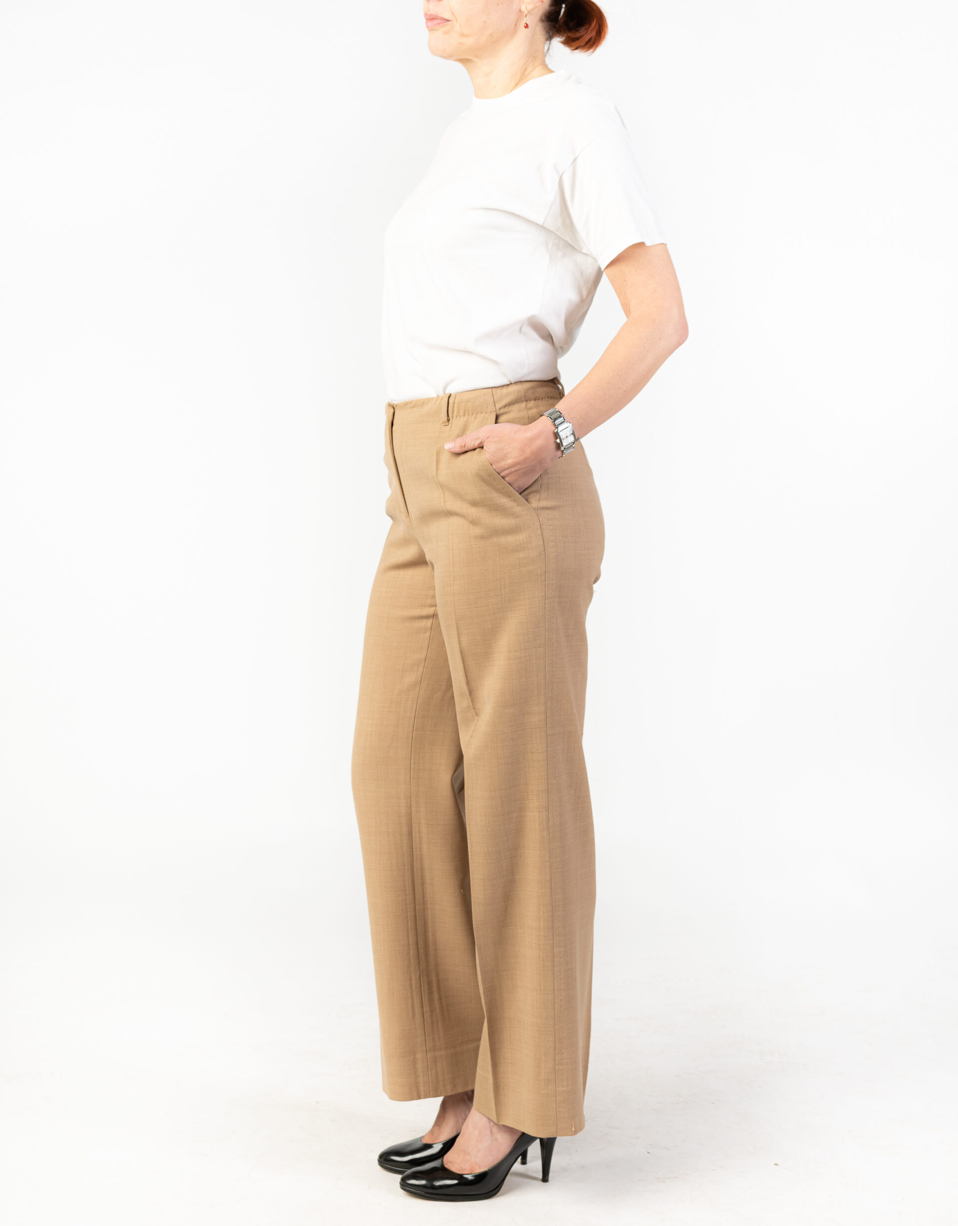 Pantalone Max Mara ampio safari con tasche, chiusura con zip e bottone