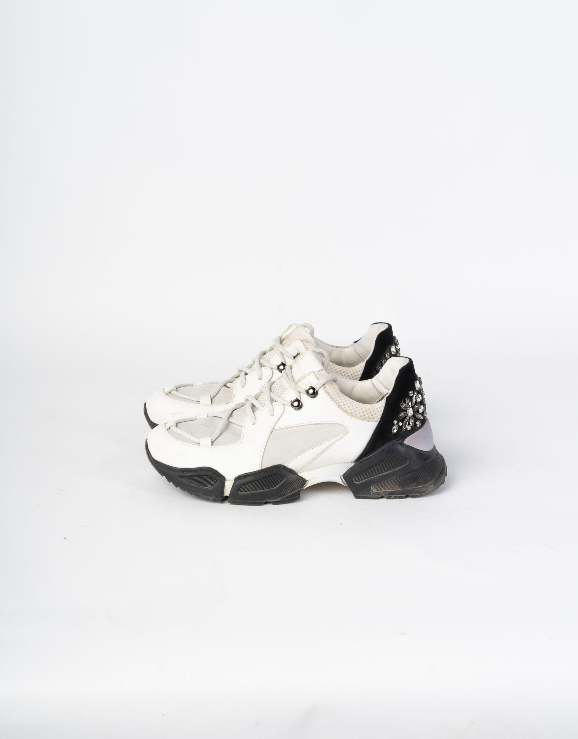 Sneakers Twin Set bianche con tallone nero impreziosito da gemme