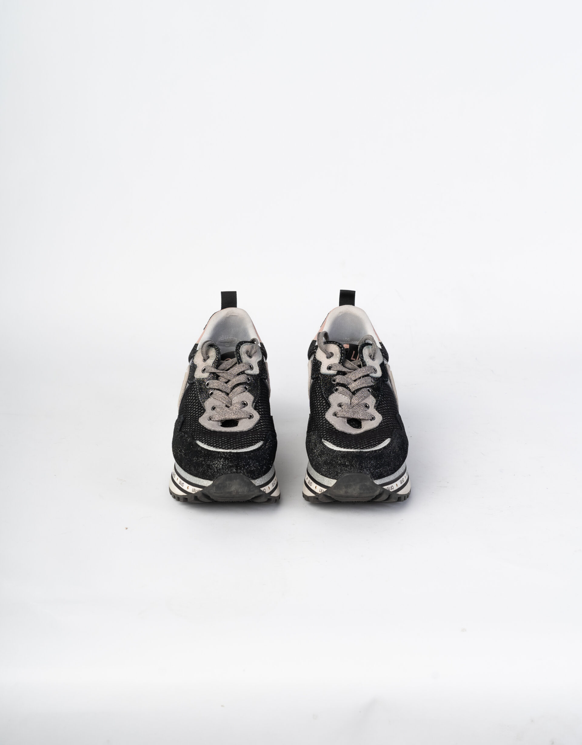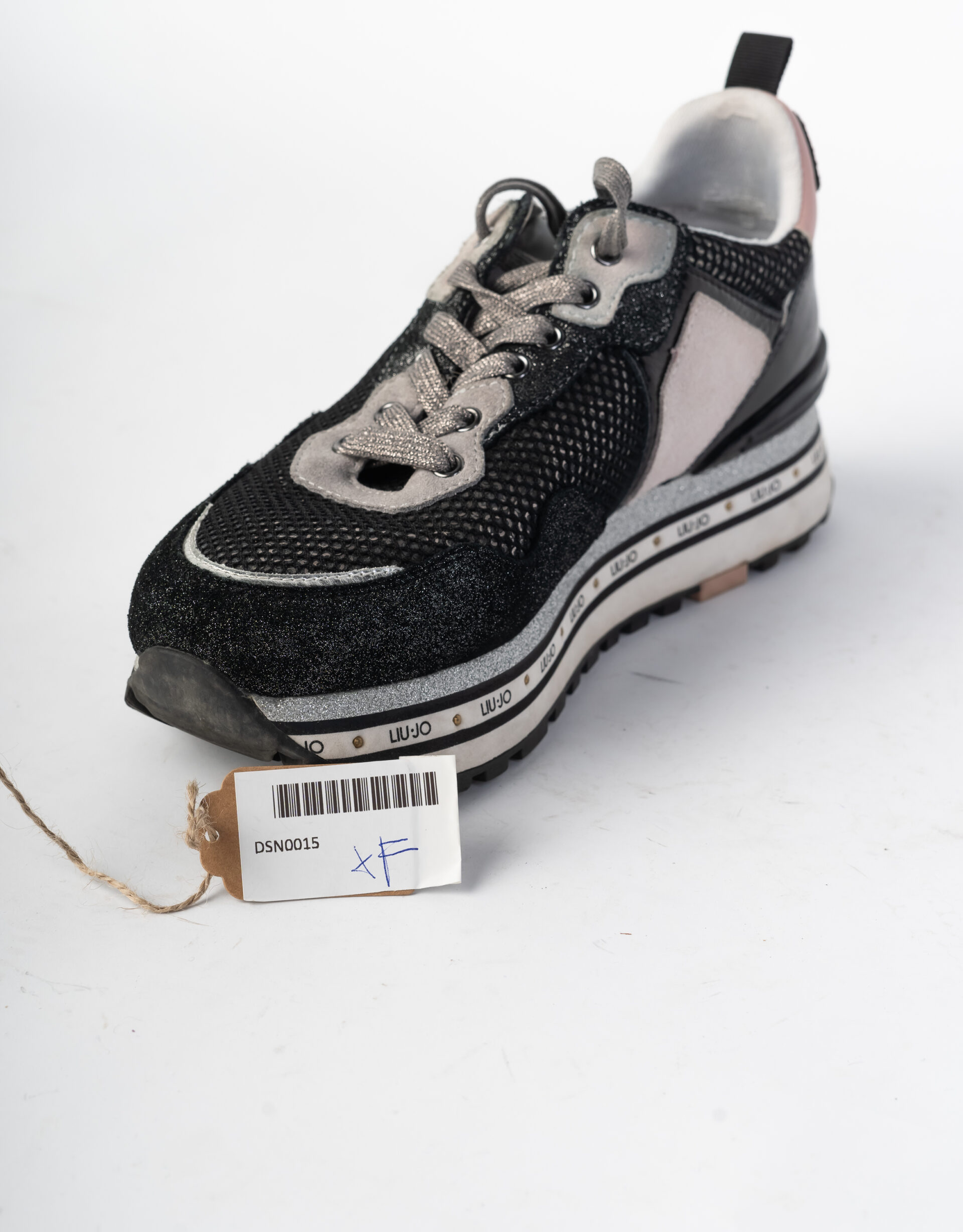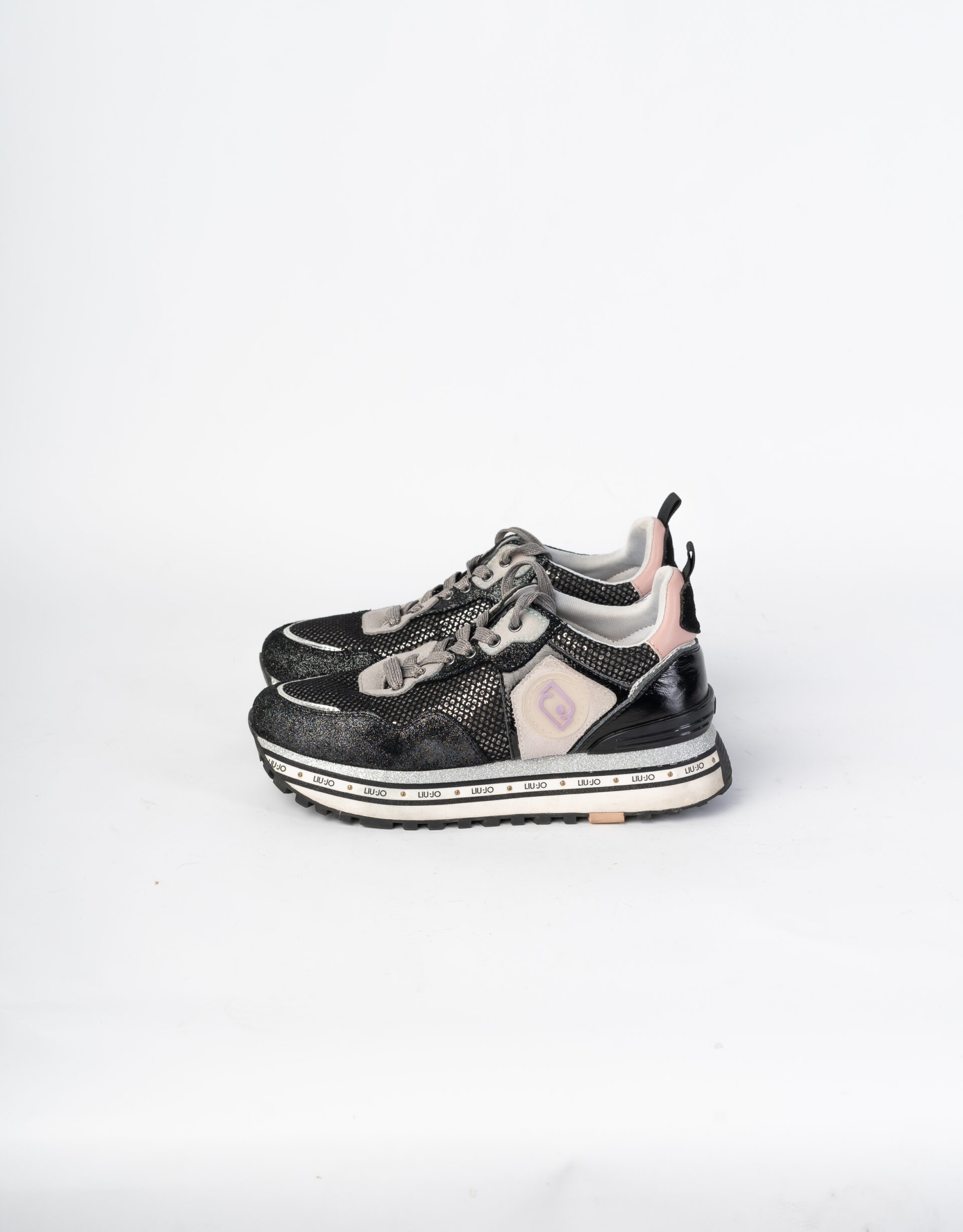 Sneakers Liu-Jo Maxi Wonder 1con. Platform 4cm, lacci argentati e tomaia mash, applicazioni in pelle e tessuto