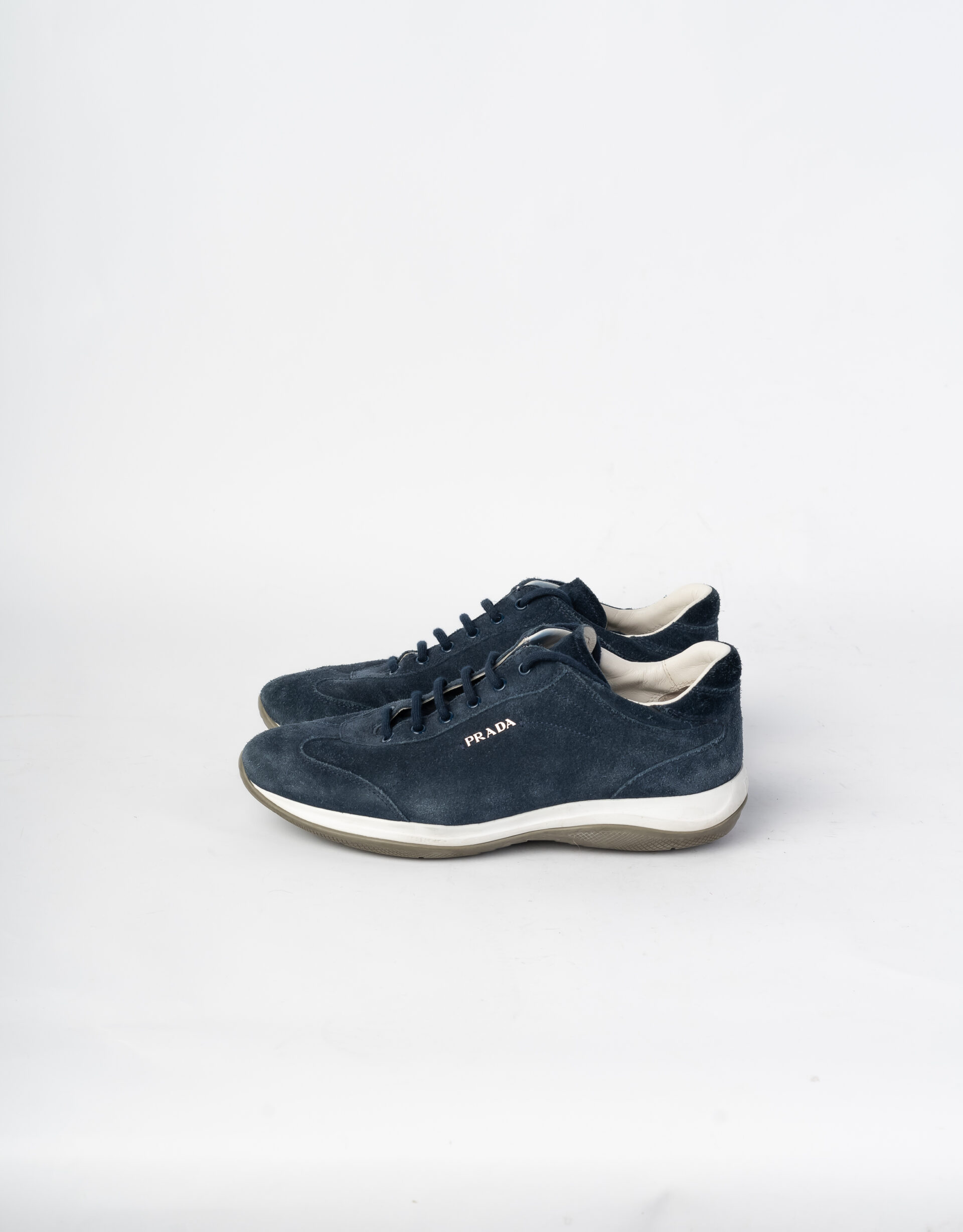 Sneakers in camoscio blu Prada.