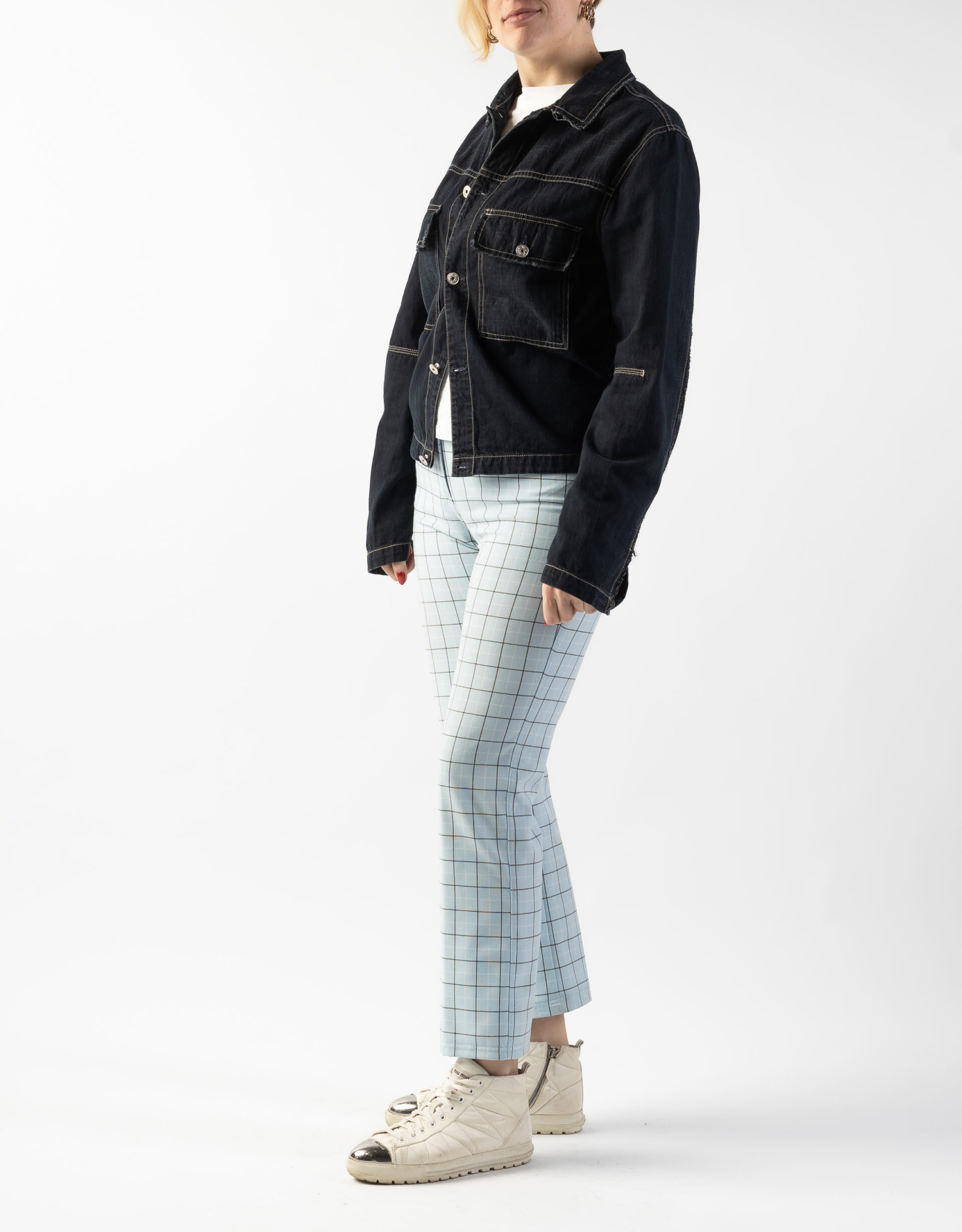 Giubbotto in denim corto, dal taglio dritto, con taschini sul petto.