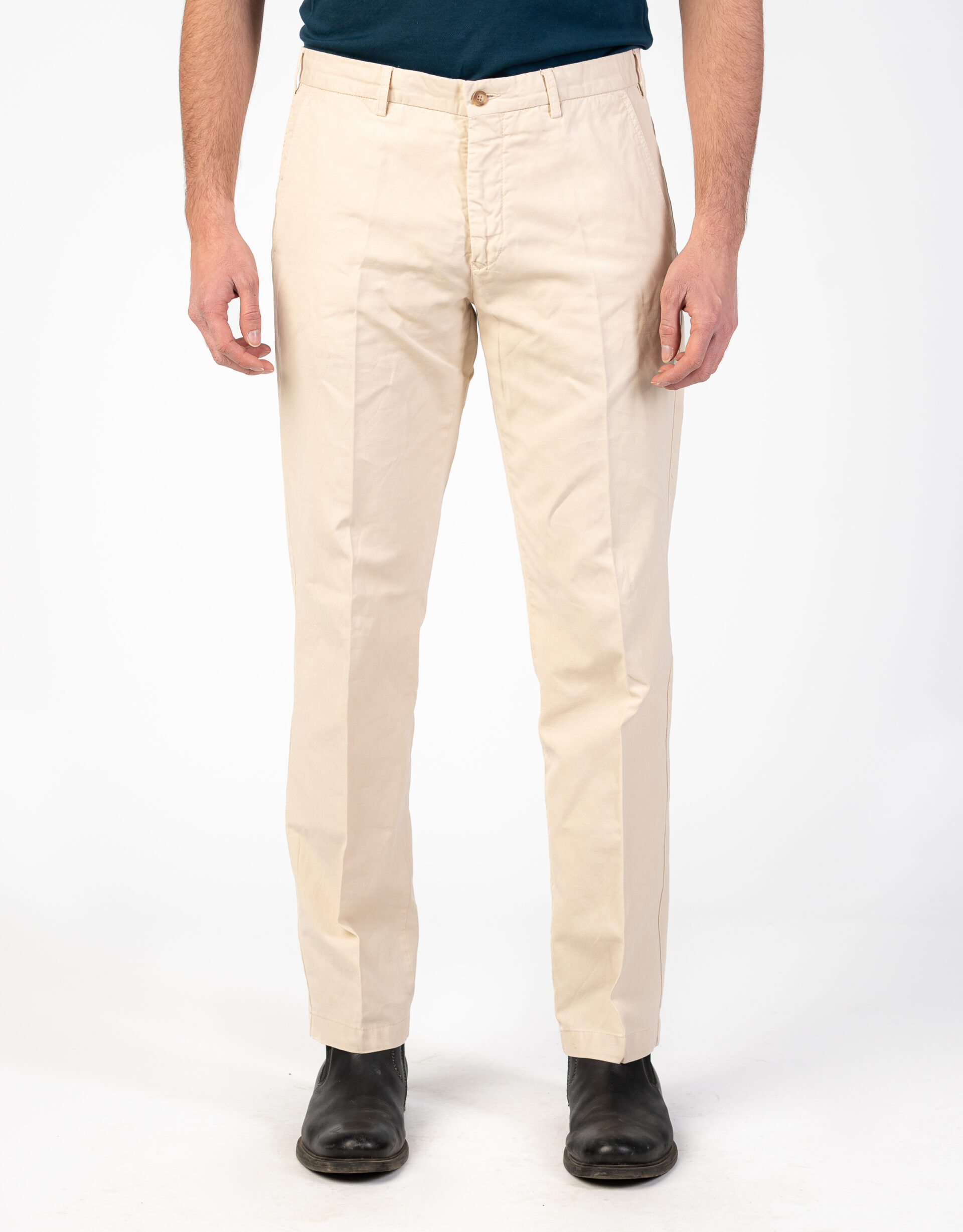 Pantalone dritto con due taschini posteriori e due tasche laterali.